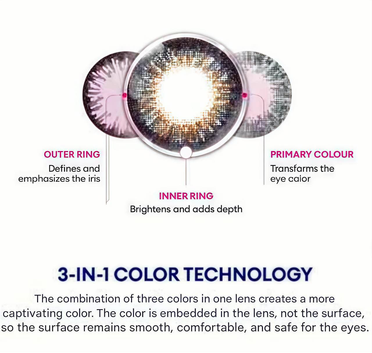 | Contact Lens Colour | Amethyst, Blue, Brilliant Blue, Brown, Gemstone green, Green, Grey, Honey, Pure Hazel, Sterling gray, True Sapphire, Turquoise |