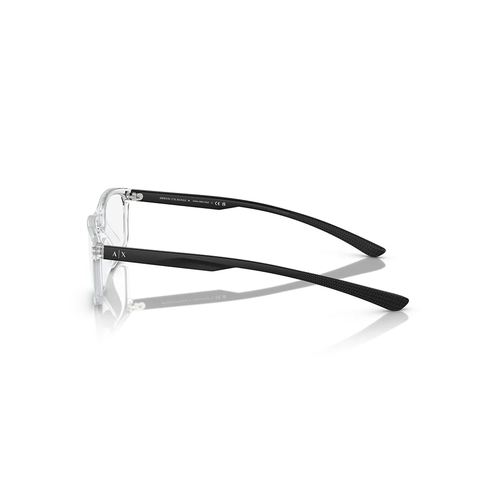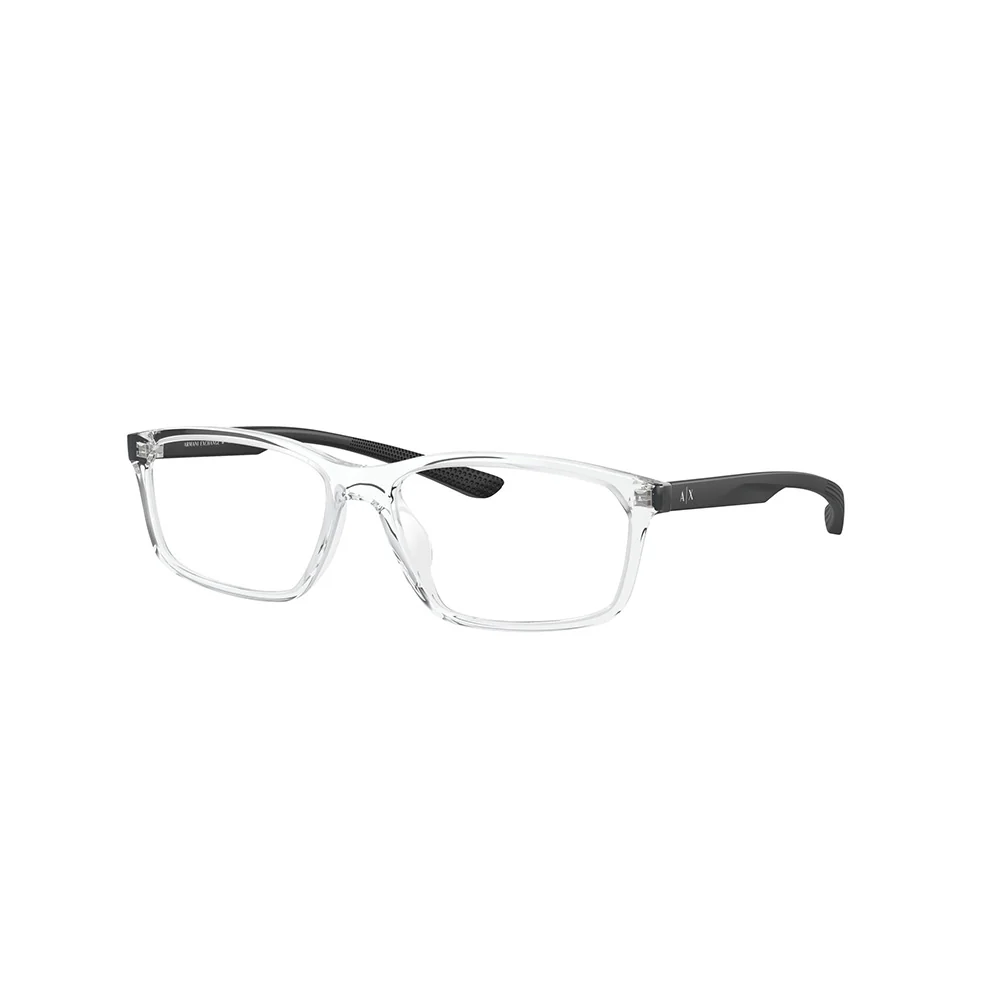 Armani Exchange (3108U 8333 56-16 145) is a modern rectangular eyeglass frame with a transparent finish that offers a clean, contemporary look. The color code (8333) gives it a versatile style that pairs well with many outfits. The size—56 mm lens width, 16 mm bridge, and 145 mm temple length—provides a comfortable medium fit for most adults. These full-rim glasses can be fitted with prescription lenses for everyday use. They’re a stylish, minimalist choice with a premium fashion brand appeal.