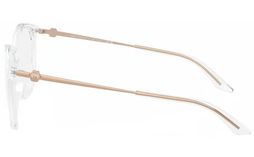 The Armani Exchange AX3109 (8235 54-17-140) eyeglasses feature a full-rim round frame crafted from a combination of injected material and metal for durability and lightweight comfort. The frame comes in a shiny crystal color, offering a modern and elegant look ideal for everyday wear. With its 54-17-140 size, it provides a comfortable medium fit while maintaining the contemporary style of Armani Exchange eyewear.