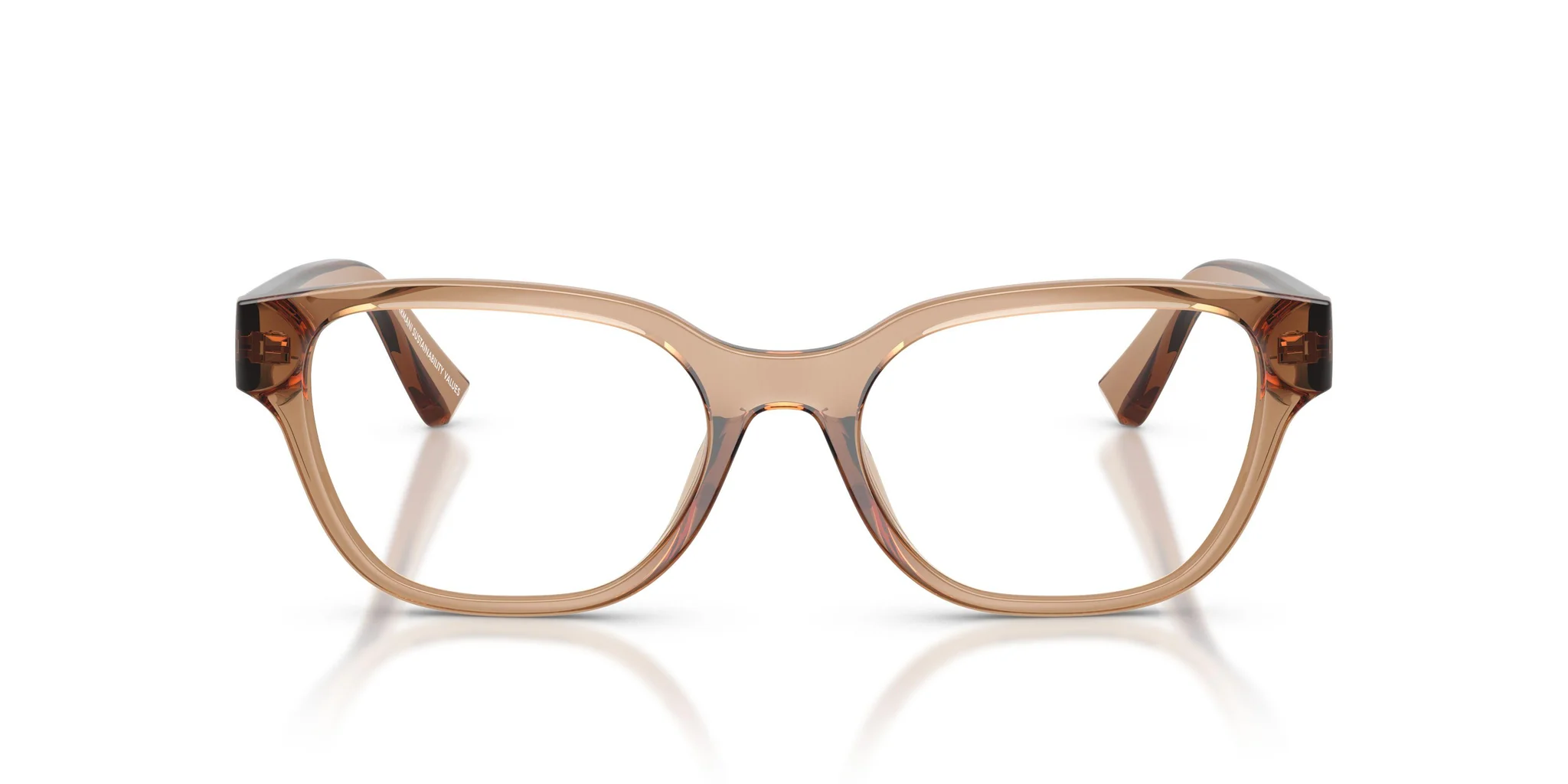 The Armani Exchange AX3134U Women’s Eyeglasses (3134U 8396 53-18-140) feature a stylish full-rim frame with a modern cat-eye shape, designed to add a fashionable and feminine touch. The frame comes in a shiny transparent brown tone and is crafted from lightweight injected plastic for durability and everyday comfort. With its balanced 53-18-140 size, it offers a comfortable fit while maintaining the contemporary style of **Armani Exchange eyewear.