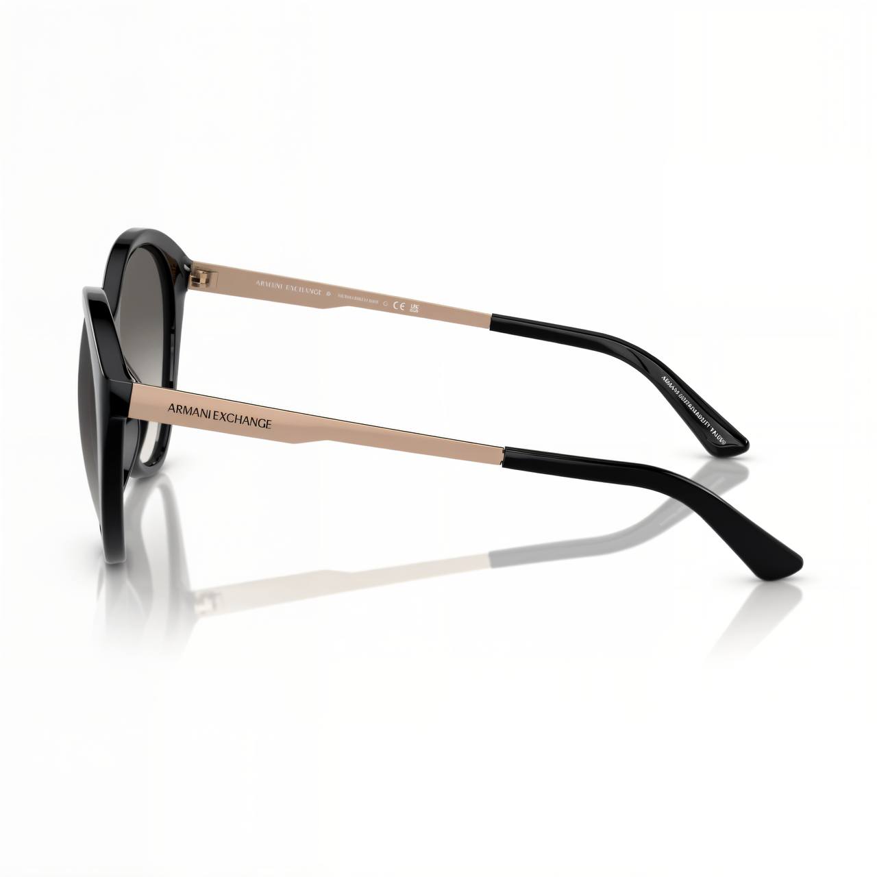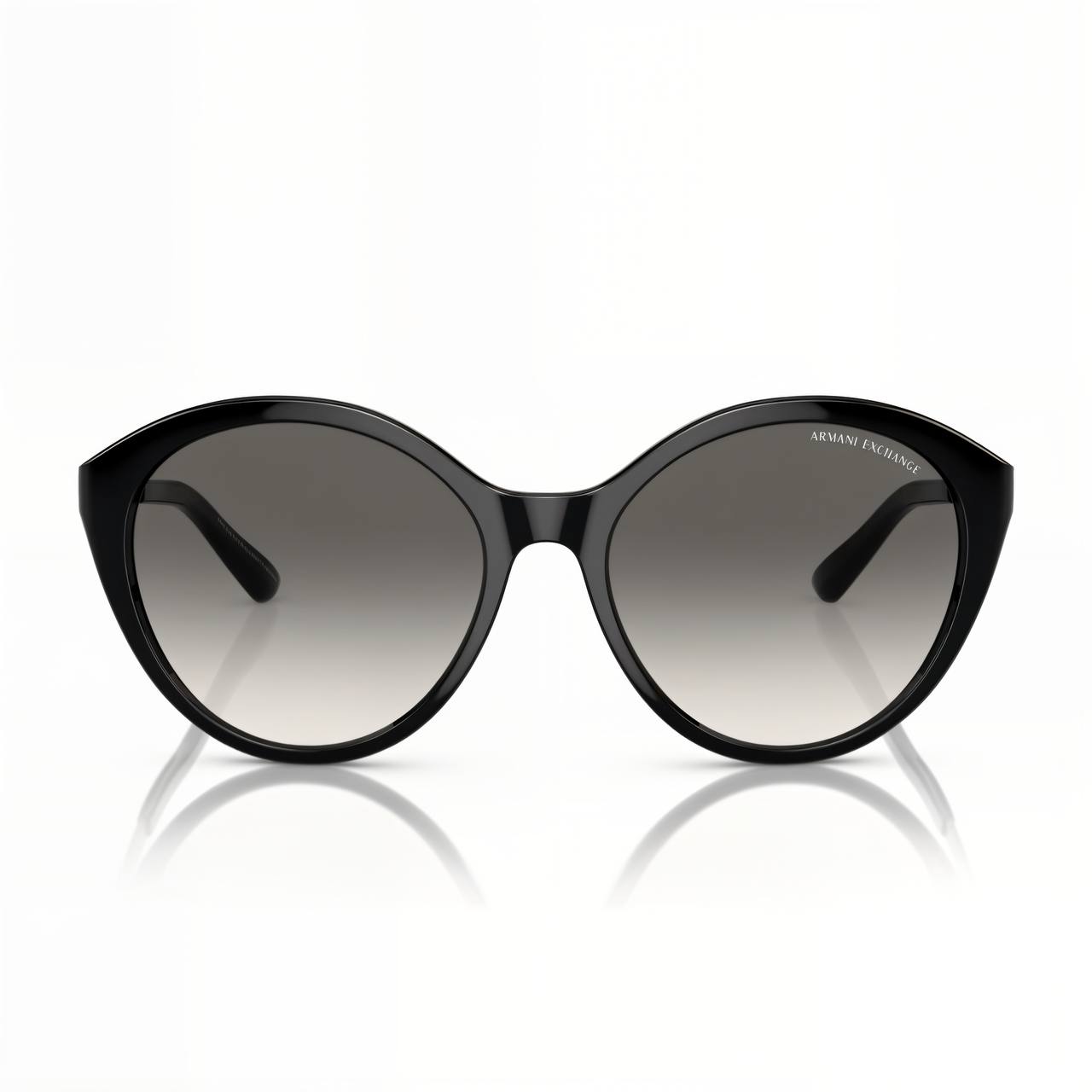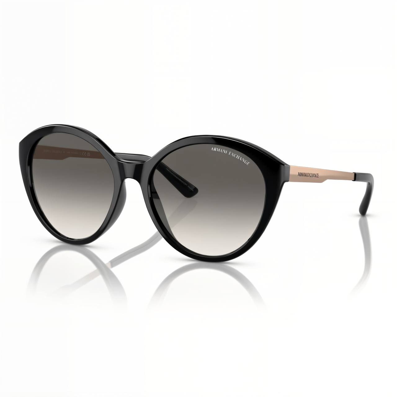 A stylish full-rim sunglasses frame from Armani Exchange, designed with a sleek and modern shape for a fashionable everyday look. The shiny black frame paired with grey gradient lenses adds a sophisticated touch while providing reliable UV protection. With a 55-17-140 size, it offers a comfortable fit for medium face sizes.