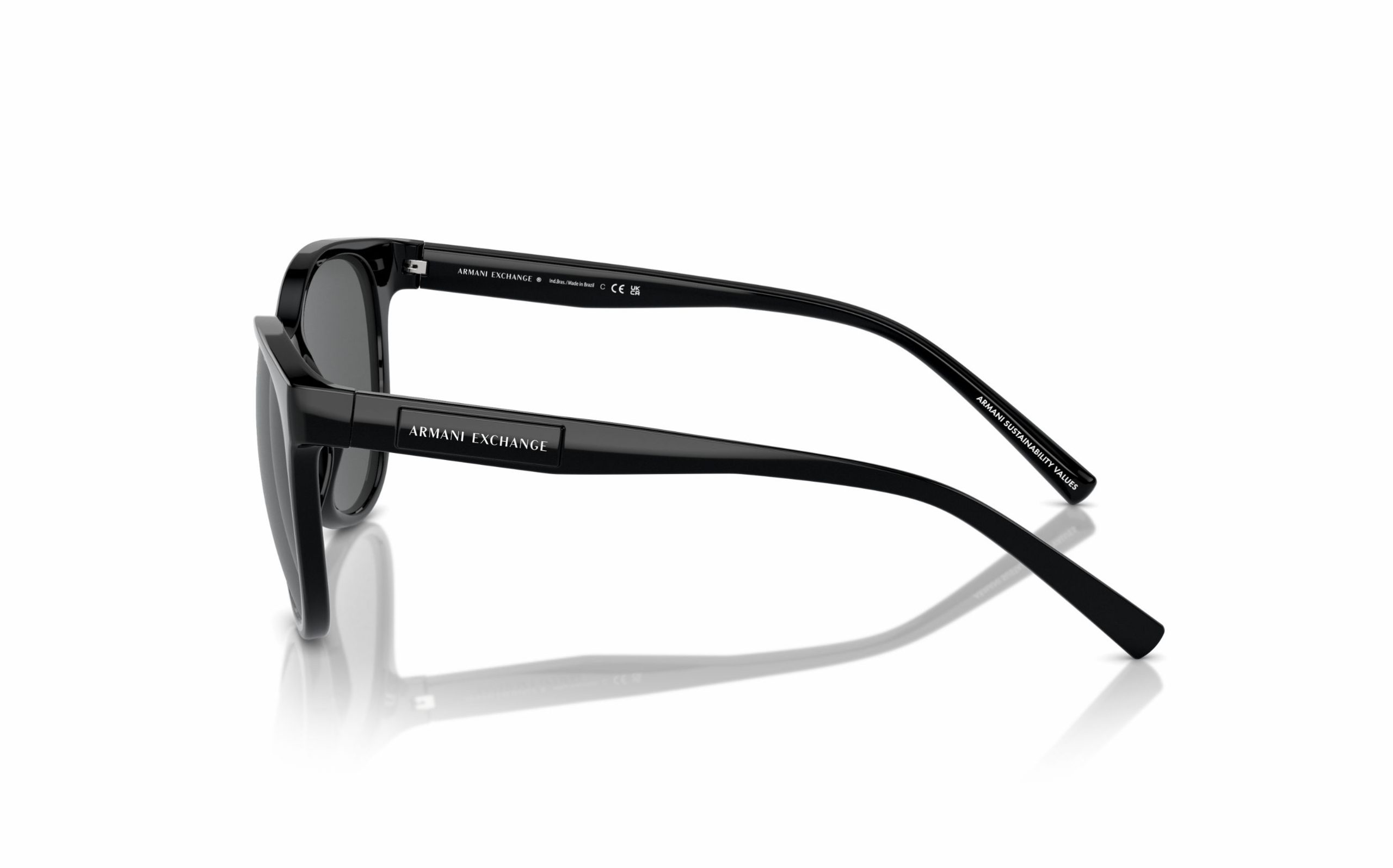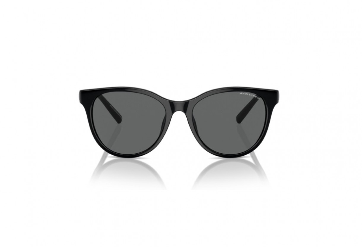 A stylish cat-eye sunglasses design from Armani Exchange, featuring a shiny black full-rim frame with dark grey lenses for a modern and elegant look. The lightweight injected frame provides comfort, while the 54-17-140 size ensures a balanced fit for everyday wear. These sunglasses offer 100% UV protection, combining fashion with reliable eye protection