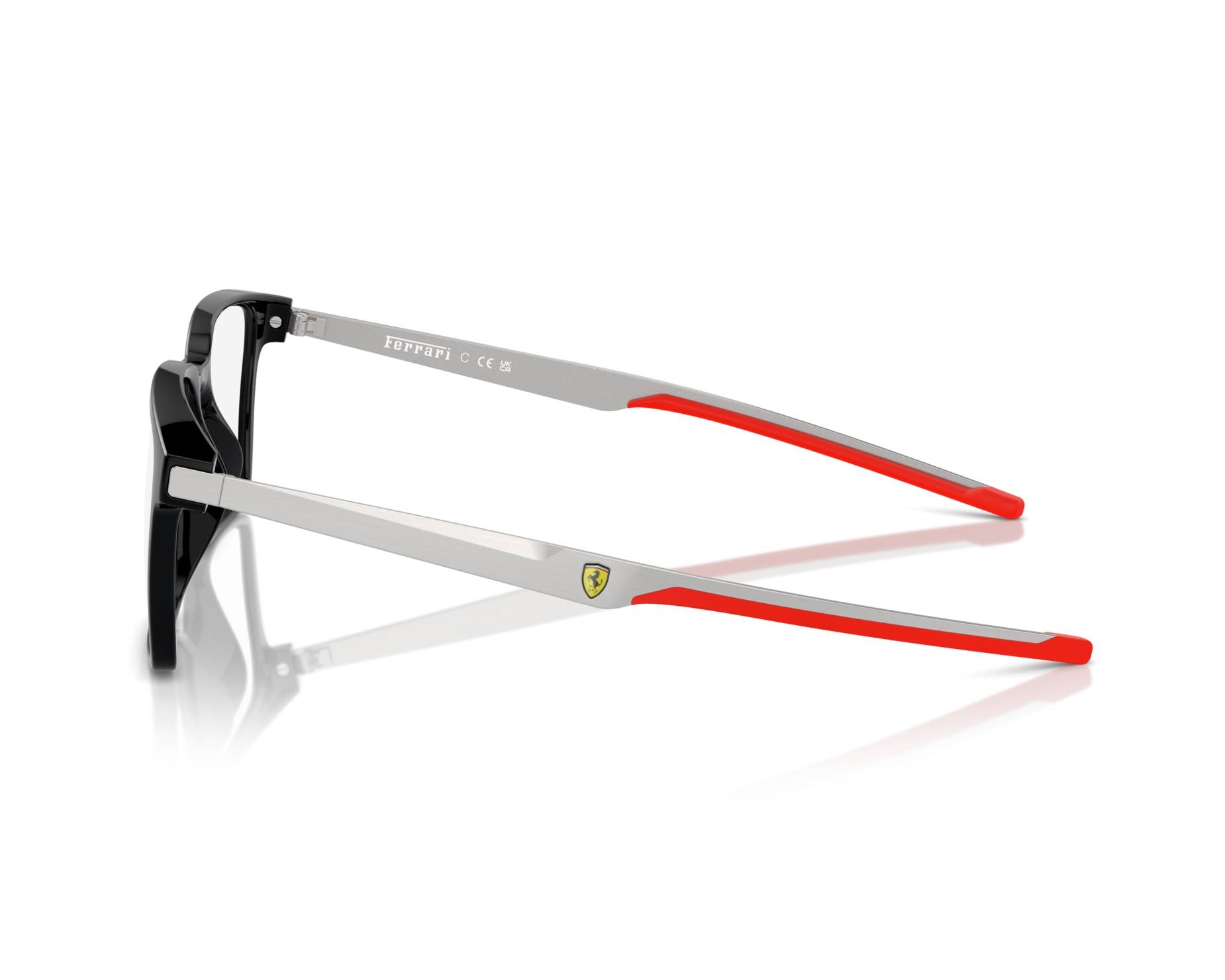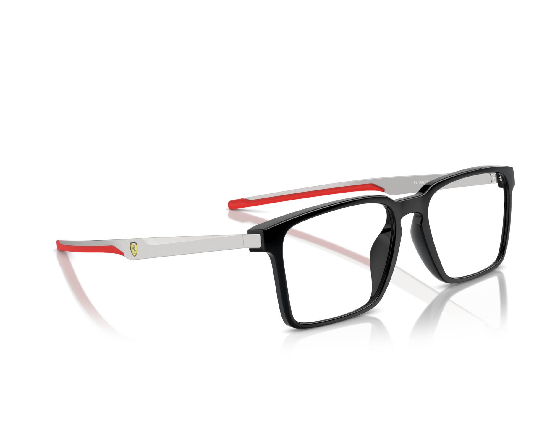 The Ferrari FZ8005U 501 (54-18-145) features a full-rim rectangular frame with a sporty and modern design. The black and brushed silver color combination gives it a sleek, premium look inspired by Ferrari’s racing style. Made with injected material and steel, it offers durability and everyday comfort