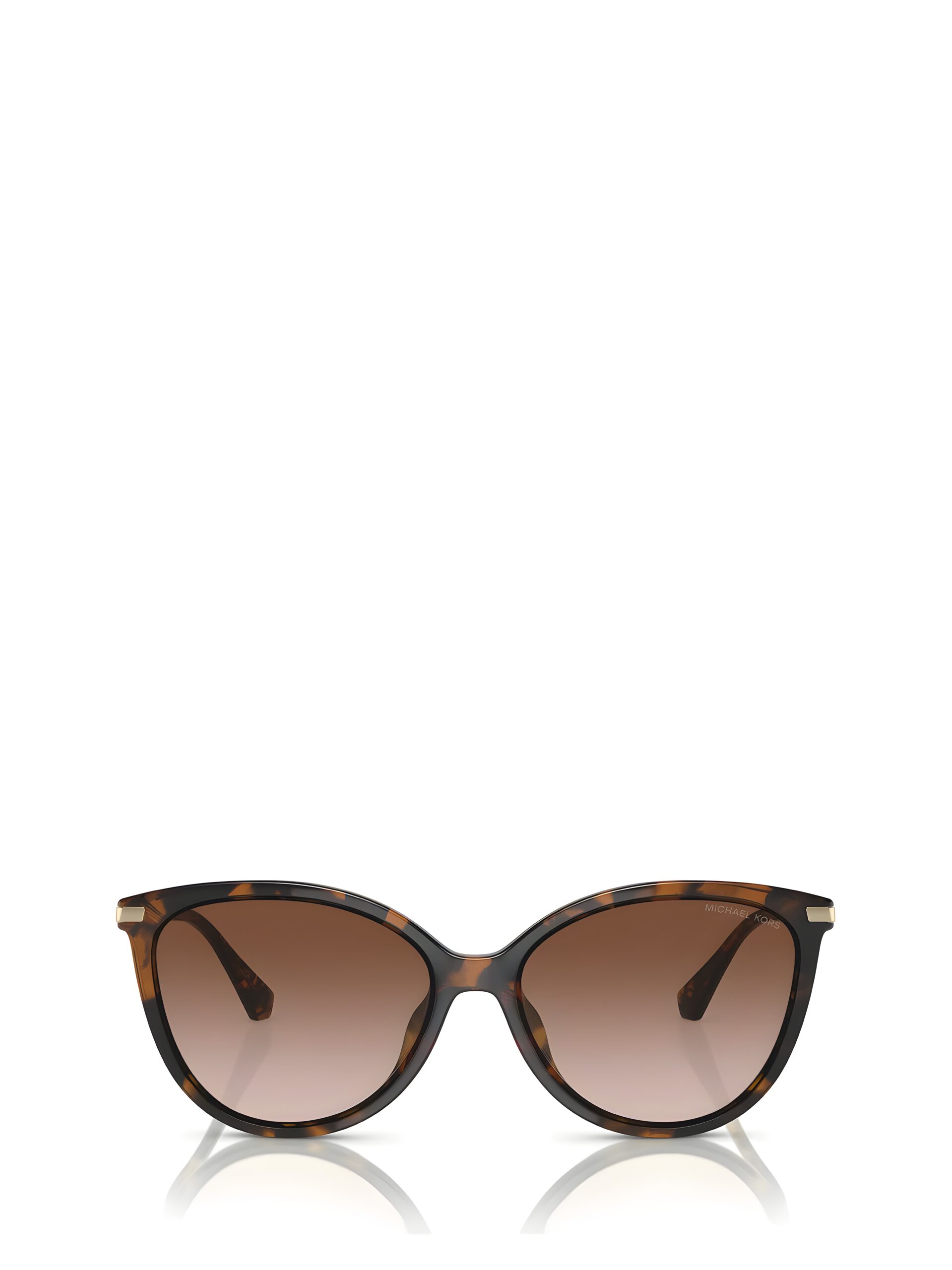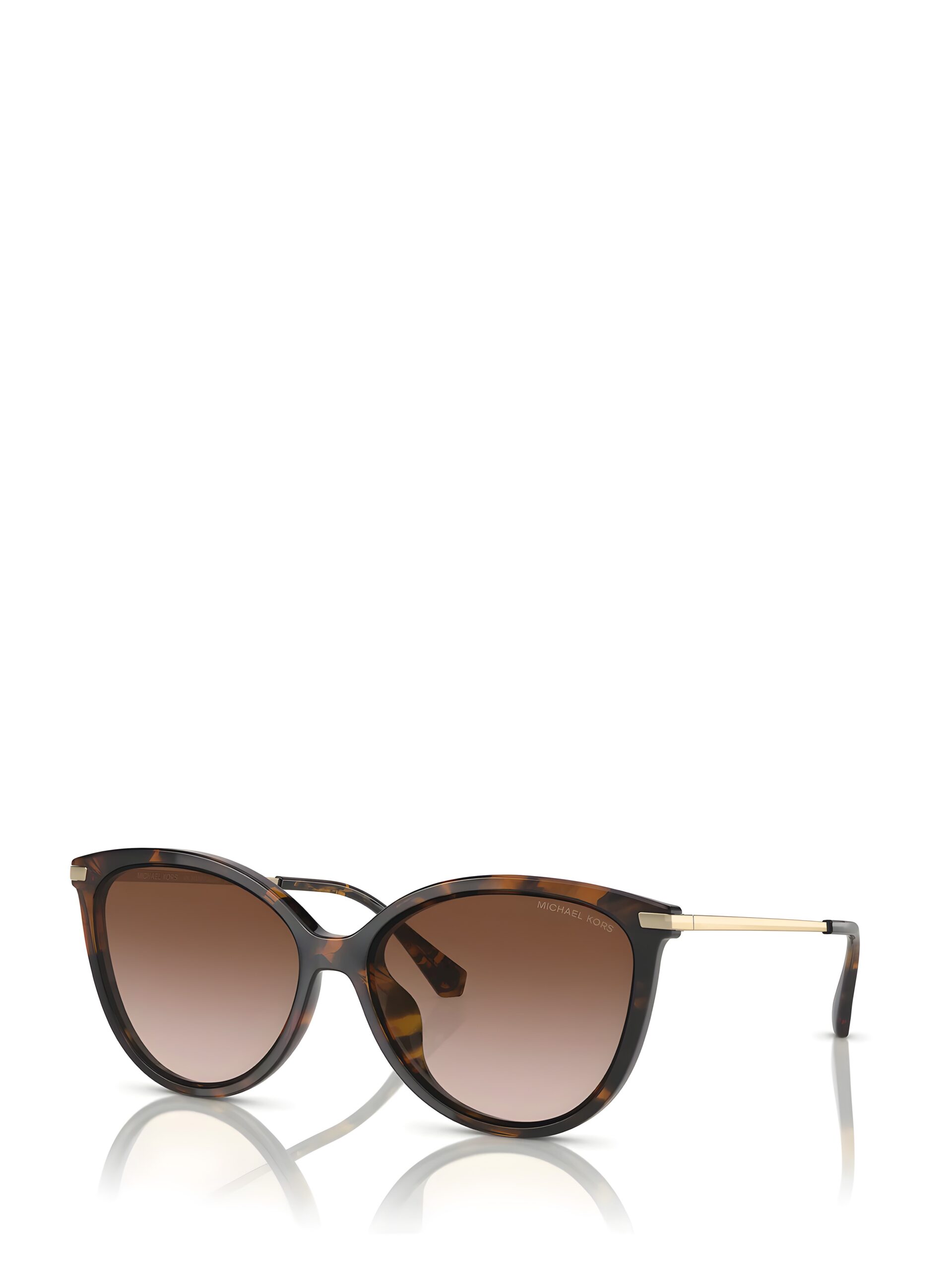 Michael Kors (2184U 300613 58-15 140) features a stylish dark tortoise frame paired with elegant brown-gradient lenses, giving it a classic and chic look. The oversized 58 mm lens width adds a bold presence while still remaining comfortable. With a 15 mm bridge and 140 mm temples, it offers a secure and well-balanced fit for medium to larger face shapes. The soft cat-eye silhouette adds a touch of feminine sophistication. A perfect choice for anyone seeking a fashionable and versatile Michael Kors sunglass.