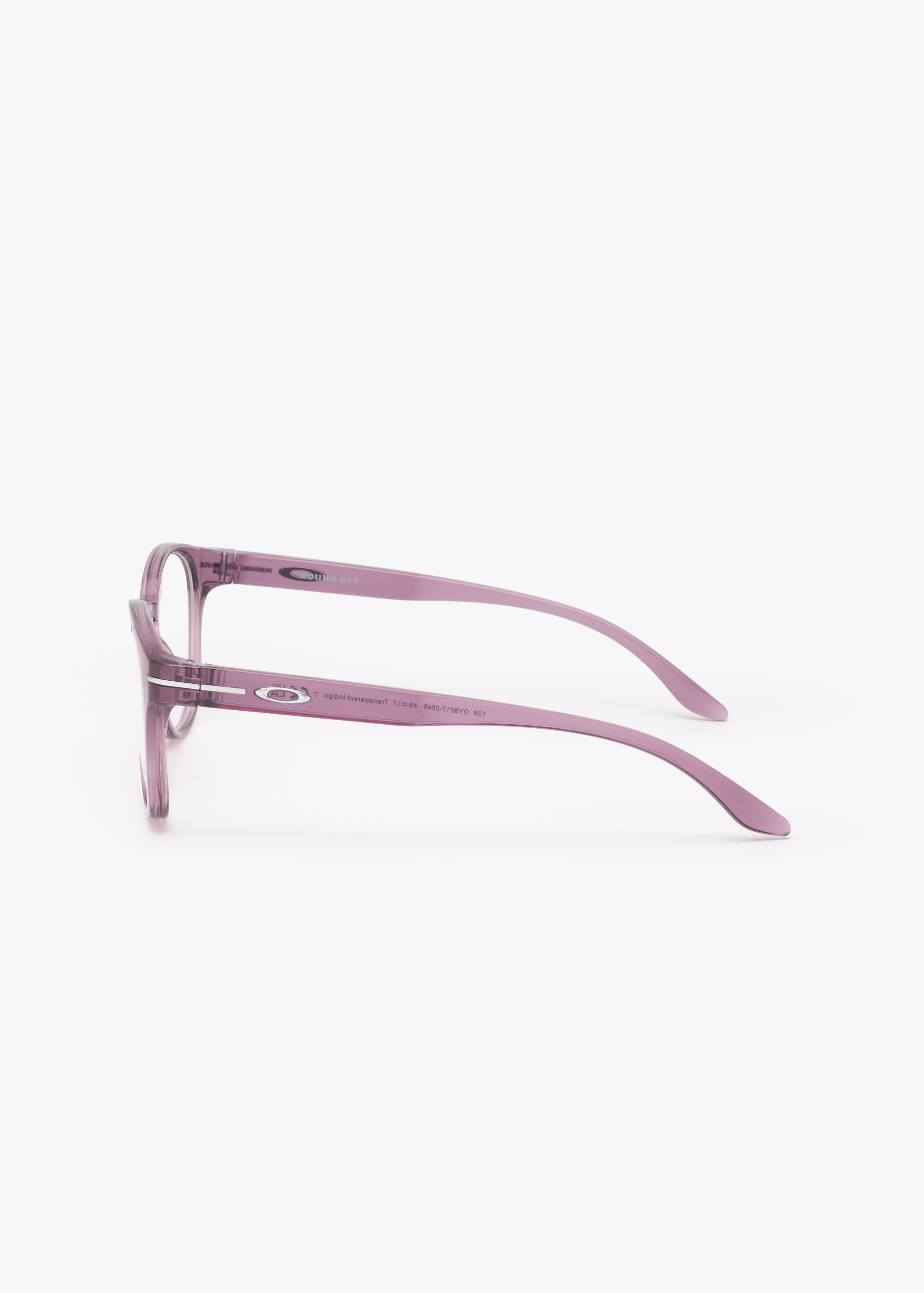 The Oakley OY8017-0548 Transparent Indigo is a youth-fit Round Off eyeglass frame in a translucent indigo color, designed for kids and active wear. It features a lightweight, durable plastic (O-Matter) construction with a full-rim round shape that suits everyday wear. The frame typically comes in sizes like 48-17-128 mm, meaning ~48 mm lens width and a 17 mm bridge, and can be fitted with prescription lenses. It’s comfortable and built for everyday use with a secure fit tailored to younger faces. Authentic pairs should be purchased from official Oakley dealers to ensure quality and correct frame details