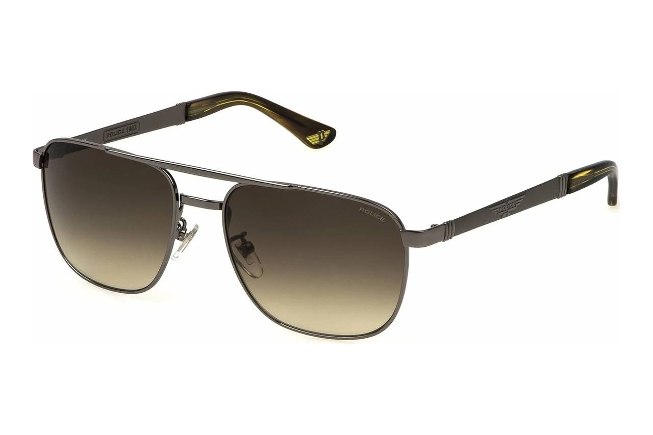 The Police SPL890 0509 features a sleek shiny ruthenium metal frame in a modern square design that suits most face shapes. Its 55-17 sizing and 145 mm temples offer a comfortable and secure everyday fit. The model comes with stylish green gradient tinted lenses, giving a premium look while providing balanced sun protection. The metal build adds durability and a refined finish. A perfect choice for anyone looking for a clean, contemporary Police frame with a distinctive gradient lens tint.