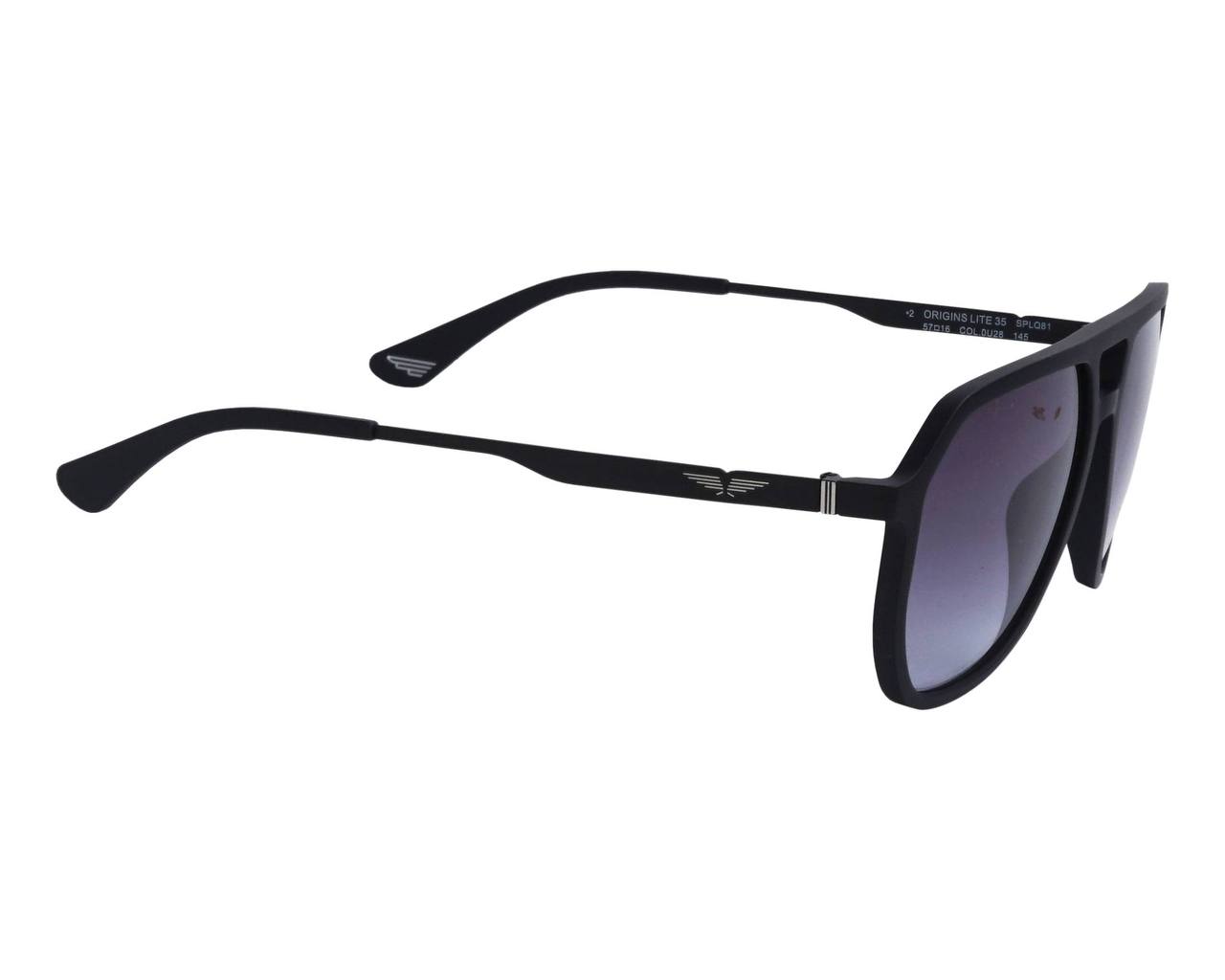 The Police SPLQ81 OU28 sunglasses feature a sleek matte black aviator-style frame with a modern, streamlined design. The 57-16 size provides wide lens coverage paired with a comfortable bridge fit. Its 145 mm temples offer secure, all-day wearability. The smoke-gradient lenses add a stylish finish while giving balanced sun protection. A perfect choice for those who want a classic Police aviator with a clean, contemporary look.