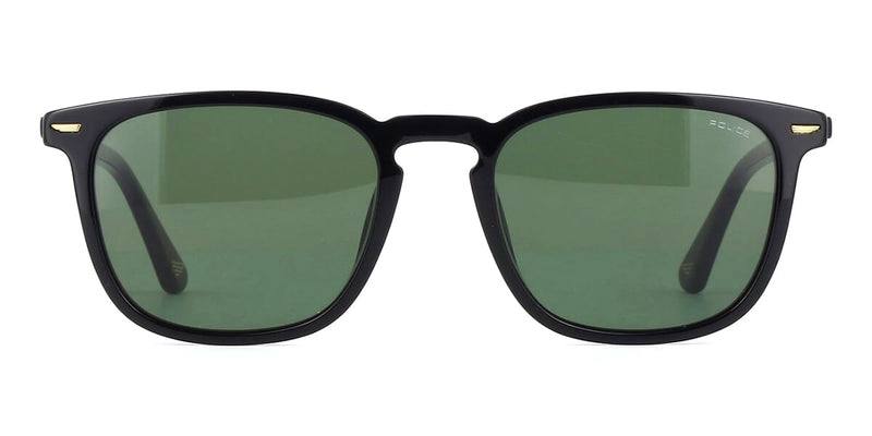 The Police SPLQ86 0700 has a shiny black (glossy black) full-rim frame for a sleek and modern look. Its 54-20 size and 145 mm temple length offer a comfortable medium-fit profile. The lenses are tinted green, adding a bold yet classic style to the design. The combined acetate/metal construction gives a durable yet fashionable finish. This model works well for everyday wear or as a stylish accessory when you want a refined, contemporary look.
