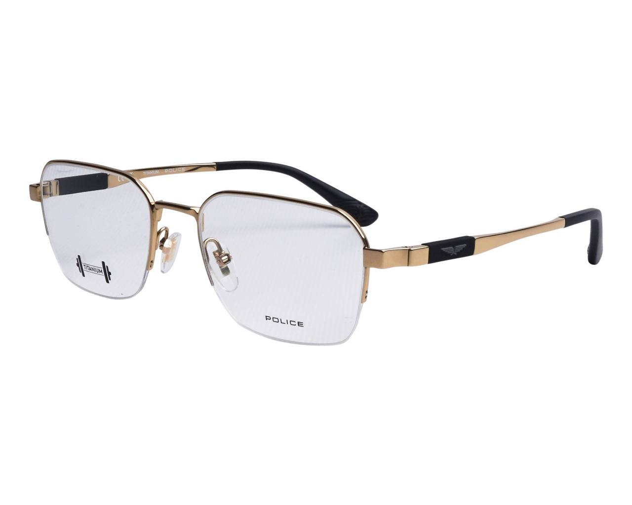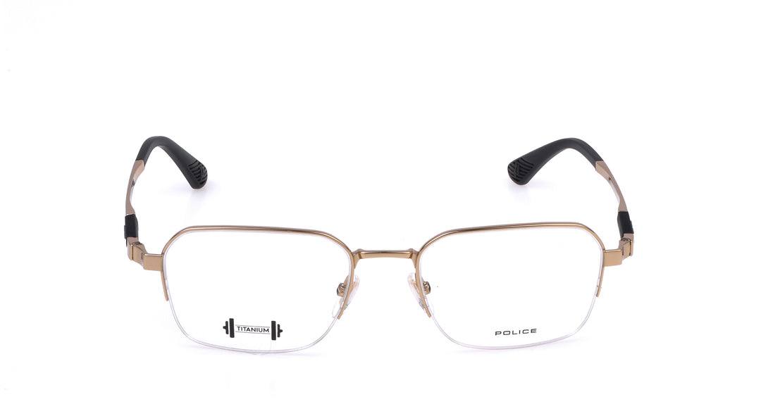 Police (VPLP16 0300 53-19-145) features a sleek shiny rose-gold finish that adds a refined and modern touch. The semi-rim rectangular design offers a lightweight, minimalist look while maintaining durability with its titanium construction. Its slim temples provide a comfortable and secure fit for all-day wear. The frame comes with clear demo lenses, ready to be customized with your prescription. A stylish and elegant choice for anyone who prefers a premium metallic aesthetic.