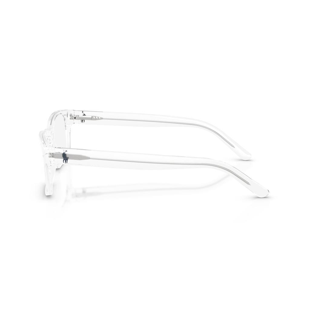 Polo PH 2117 5331 56‑16‑150 — this eyeglass frame has a shiny crystal (transparent) full-rim acetate frame in a rectangular shape, giving it a clean yet modern look. It’s sized at 56 mm lens width, 16 mm bridge, 150 mm temple, which makes it a relatively large, comfortable frame ideal for everyday use. The transparent frame color gives a subtle, minimalist vibe that pairs well with different outfits. Its construction is lightweight and durable, making it practical for daily wear with prescription or clear lenses.