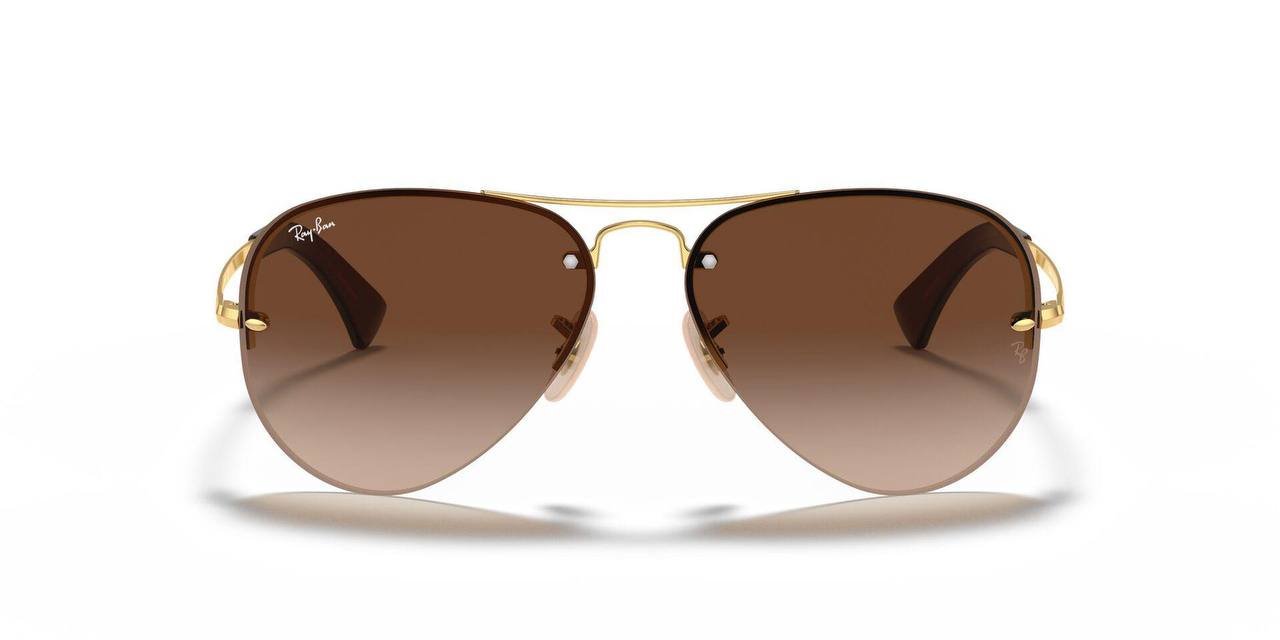 Ray-Ban RB3449 (001/13) 59-14-135 features a classic aviator-inspired metal frame in a polished gold finish with a clean, lightweight design. The brown gradient lenses provide comfortable sun protection while maintaining natural color clarity. Its slim temples and adjustable nose pads offer a secure and comfortable fit for everyday wear. This model delivers a timeless, stylish look that suits both casual and smart outfits. Ideal for daily use, it combines Ray-Ban’s quality craftsmanship with elegant, minimalist style.