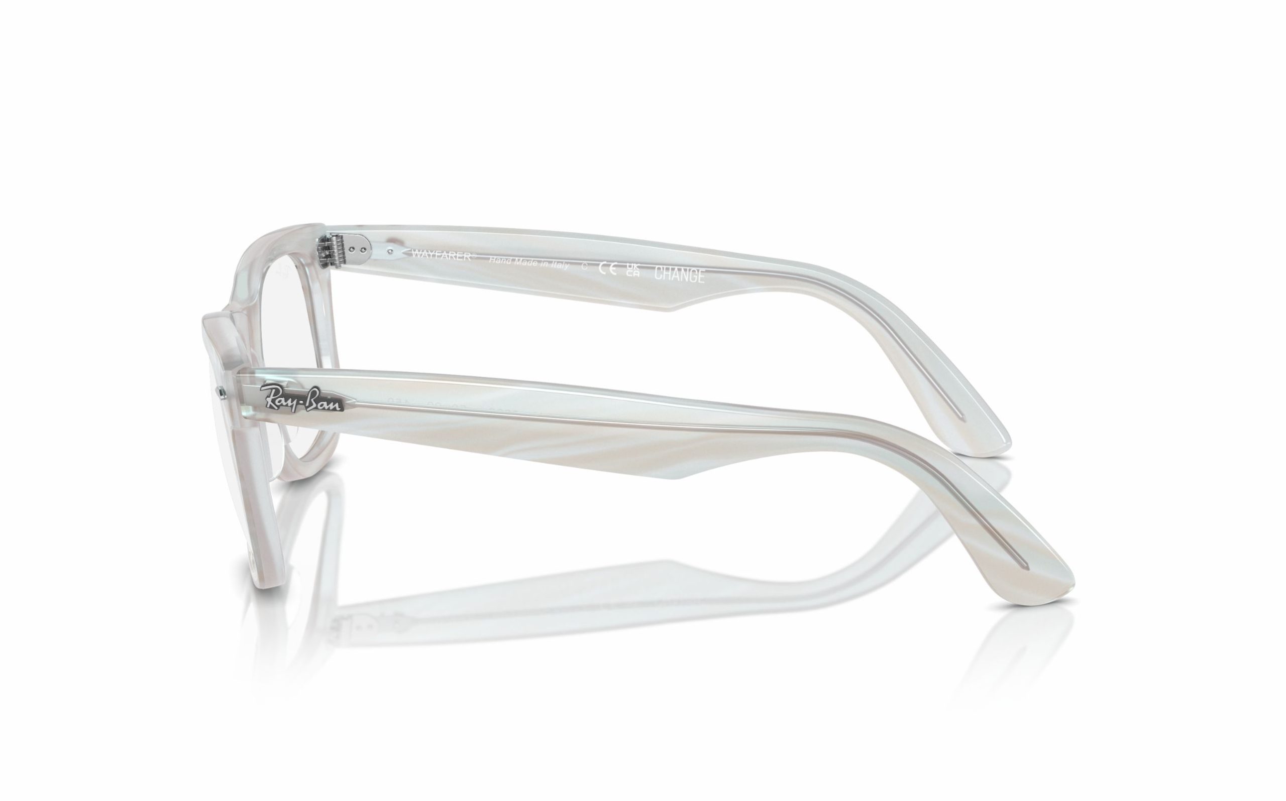 Ray‑Ban RX4340V Wayfarer Ease 8382 is a pair of Ray-Ban Wayfarer Ease eyeglasses featuring a distinctive Photo Striped Light Blue frame that subtly shifts its look with changing light conditions. The classic Wayfarer-style square shape gives it a timeless yet modern aesthetic that works well for both men and women. With a 50 mm lens width, 22 mm bridge, and 150 mm temple length, it offers a comfortable, balanced fit for everyday wear. The clear lenses make it suitable for prescription use while the unique light-reactive color adds a fresh and stylish twist to the iconic design. Overall, these glasses blend classic silhouette with contemporary flair in a versatile everyday frame.