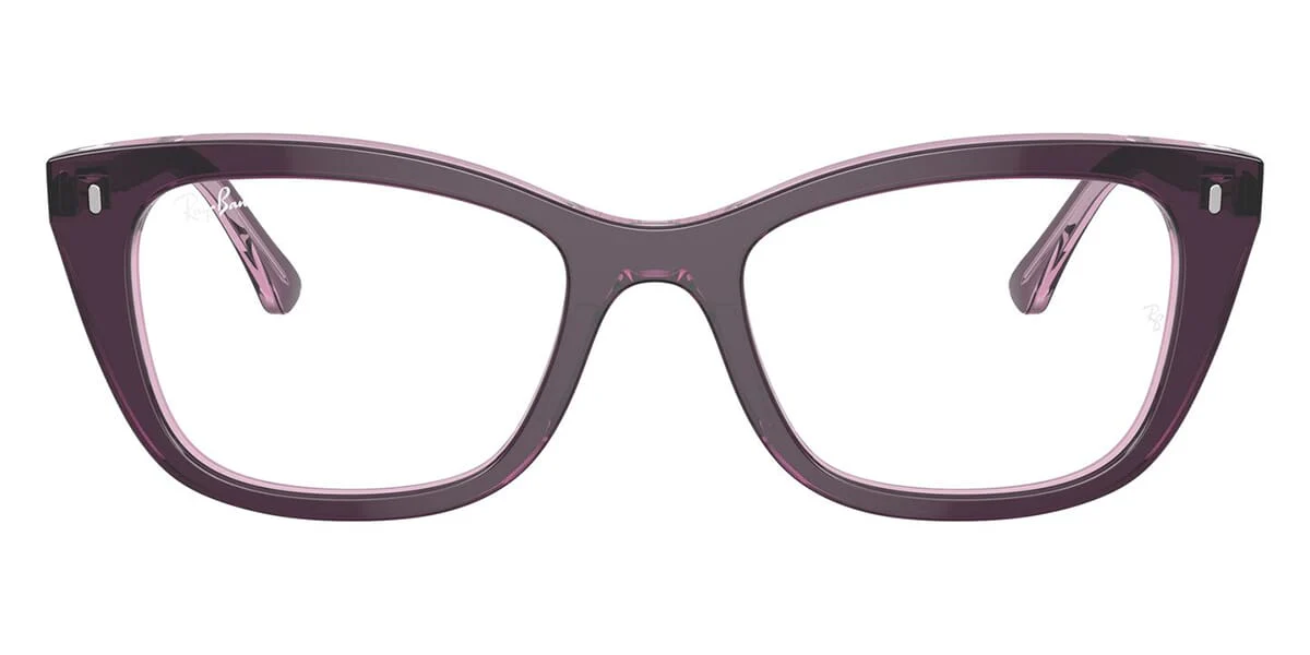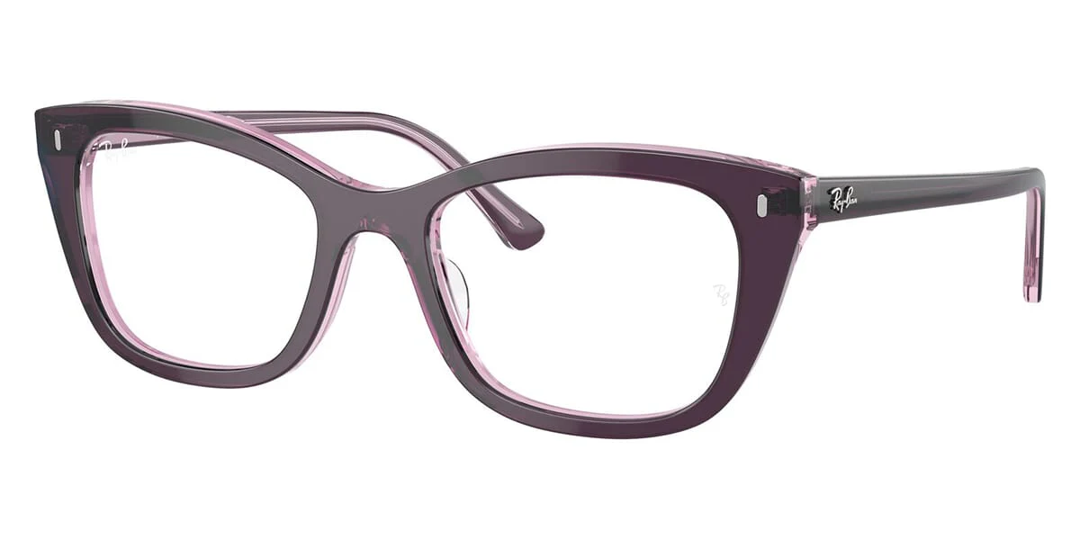 Ray‑Ban RX 5433 (8364) – 50‑19‑140 is a stylish eyeglass frame with a distinctly cat‑eye silhouette, giving it a slightly upswept, feminine look around the outer corners. The frame is made from lightweight acetate and combines classic Ray‑Ban quality with a fashionable shape that flatters heart, oval, and round face types. With a 50 mm lens width, 19 mm bridge, and 140 mm temple length, it offers a balanced and comfortable everyday fit. The transparent violet‑on‑pink color adds a modern, playful touch while keeping the design elegant. This model blends timeless style with a subtle retro flair that works well for both casual and dressy looks