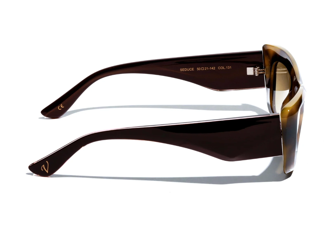 Vintage Seduce (50-21 142 COL.131) features a beautifully blended frame in warm brown and beige tones with subtle black accents for a rich, elegant look. The lenses come in a smooth brown gradient tint that adds both style and visual comfort. Its balanced 50-21 size offers a flattering and comfortable fit for everyday wear. The 142 mm temples ensure stability and long-lasting comfort. This model is perfect for those who love classic colors with a modern fashion touch.