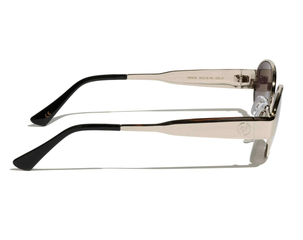 Elevate your style with the ‘Venice’ sunglasses, an enduring luxury piece defined by polished nickel metal frames and an elegant oval silhouette inspired by Celine. These shades feature gradient lenses that offer impeccable clarity and 400% UV protection