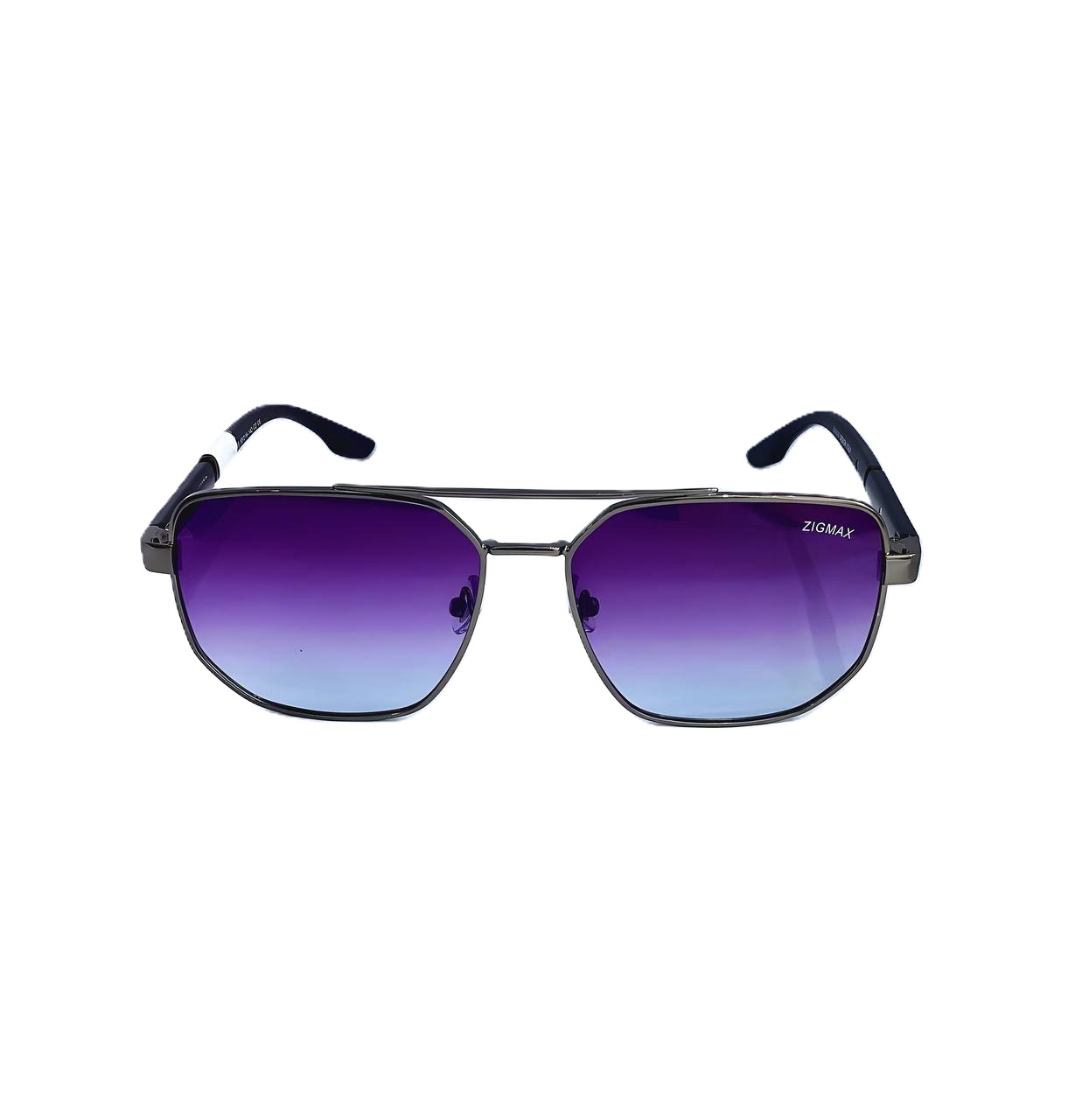 ZIGMAX gunmetal rectangle sunglasses feature a sleek metallic frame with a modern edge.