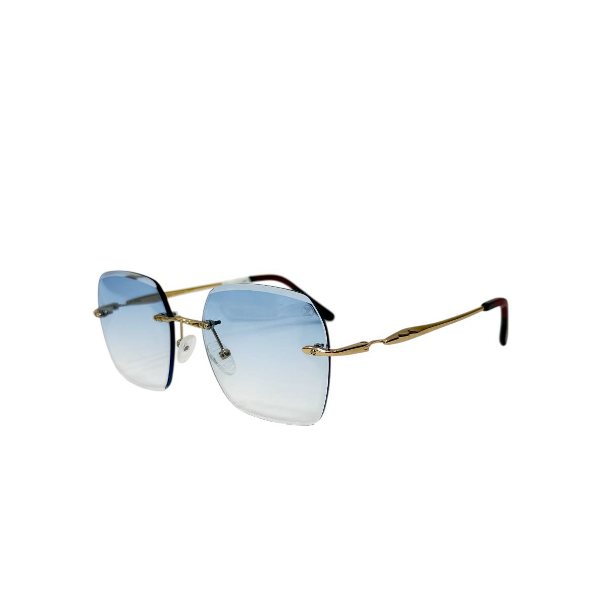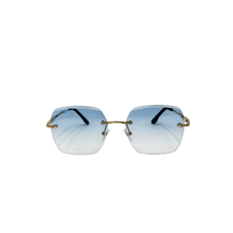 Zigmax S25668-1 (57-17 140 C1) features a stylish rimless geometric shape that gives a modern and lightweight appearance. The light blue–tinted lenses create a cool, refreshing look while providing comfortable sun protection. Its elegant golden temples add a touch of luxury and enhance the overall aesthetic. The rimless design ensures a smooth, minimal feel with excellent comfort. A perfect choice for those who prefer contemporary eyewear with a subtle pop of color.
