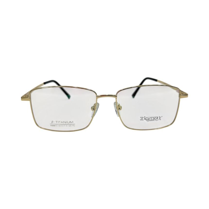 Zigmax (YM8872 53-17 143) C4 Gold Metal Frame Square Shape – These eyeglasses feature a striking gold metal square frame in size 53-17-143, offering a bold and elegant look that enhances both casual and formal styles. The square silhouette provides clean, defined lines for a contemporary aesthetic that flatters many face shapes. Crafted from lightweight metal, this frame is both durable and comfortable for all-day wear. Its minimalist design makes it perfect for prescription lenses or clear lenses, combining timeless style with everyday practicality